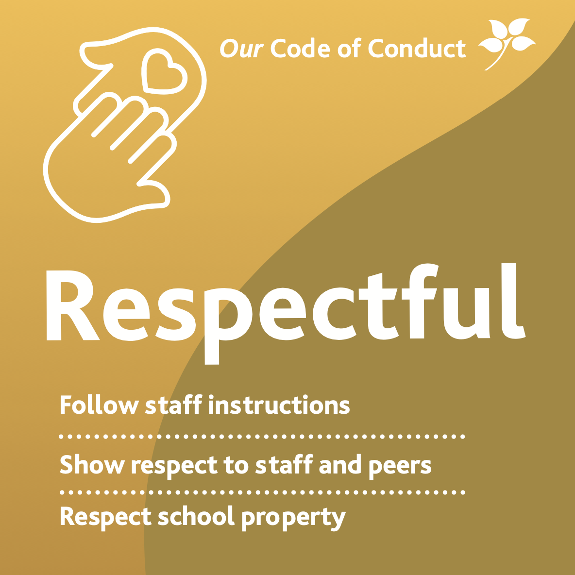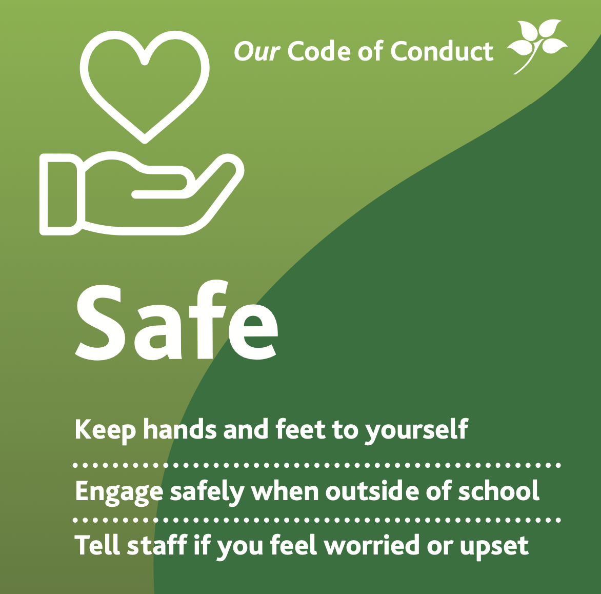 Our Code of Conduct ties in closely with our School Values, which we use as a framework for reward.