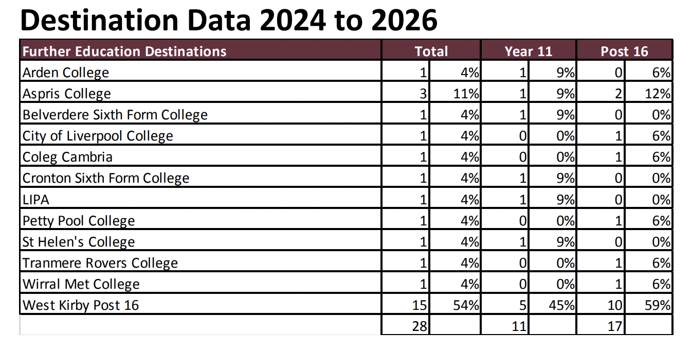 - 53% of leavers go to mainstream vocational college or sixth form setting