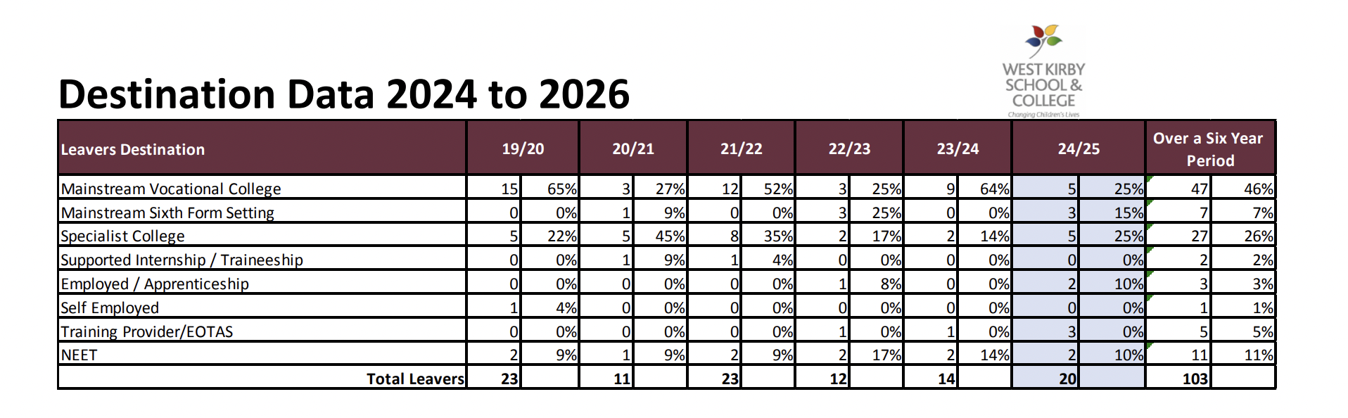 - 53% of leavers go to mainstream vocational college or sixth form setting